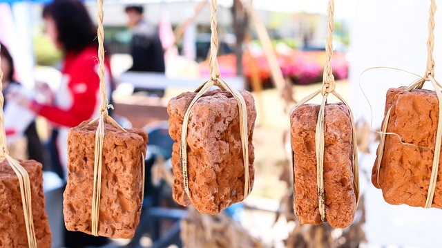 매주란 된장, 간장, 고추장 등의 다양한 한국 조미료를 만드는 데 중추적인 역할을 하는 한국 전통 발효 식품입니다. 더 자세하게 알아보기 위해 먼저 역사적 배경에 대해 살펴보겠습니다. 콩을 발효시키는 관행은 삼국시대 동안 크게 발전했습니다. 이에 대한 초기 기록에 따르면 발효 콩 제품은 한국 요리와 보존 식품에 필수적이었습니다. 고려 왕조 시기의 문서는 왕실과 평민의 식단에 발효 콩 제품이 널리 사용되었음을 강조하며, 이를 준비하고 소스와 장을 만드는 방법이 더욱 체계화되었습니다. 조선 왕조 시기에는 발효 기술이 더 발전하여 메주 생산이 가정의 필수품이 되었으며, 이 시대의 상세한 기록은 오늘날에도 여전히 사용되는 전통적인 방법에 대한 통찰력을 제공합니다. 현대에 와서는 산업 발전에도 불구하고 특히 농촌 지역에서는 전통적인 메주 준비를 하여 문화유산과 요리의 진정성을 유지하고 있습니다. 다음은 메주의 재료에 대해 설명해 보겠습니다. 이의 주요 성분은 콩, 물이며 선택 성분은 쌀짚과 소금입니다. 콩은 크기, 색상, 결함이 없는 것을 기준으로 고품질 대두를 선택합니다. 이는 단백질과 영양소의 주요 공급원이며, 단백질 외에도 섬유질, 비타민 B, 철분, 칼슘과 같은 미네랄이 풍부합니다. 콩을 불리고 요리하려면 마실 수 있을 정도의 깨끗한 물이 필수적이며, 이는 콩을 부드럽게 하고 발효 과정을 시작하는 데 도움이 됩니다. 전통적으로 메주를 발효하는 동안 쌀짚으로 감싸며, 그 이유는 볏짚에는 발효를 돕는 천연 박테리아와 곰팡이가 유입되기 때문입니다. 오늘날에는 덜 일반적이지만 일부 전통적인 관행에서는 여전히 볏짚을 사용합니다. 소금의 용도는 메주를 소금물에 담가 된장과 간장을 생산하는 2차 발효 단계에서 주로 사용되며, 이는 방부제 역할을 하고, 발효 과정을 조절하며, 풍미를 향상합니다. 현대에 와서는 기후 조절실을 시용하여 최적의 온도와 습도 수준을 유지하고 일괄된 발효를 보장하며, 자연적으로 발생하는 미생물에 의존하는 대신 특정 박테리아 및 곰팡이 균주를 도입하여 발효 과정을 표준화합니다.